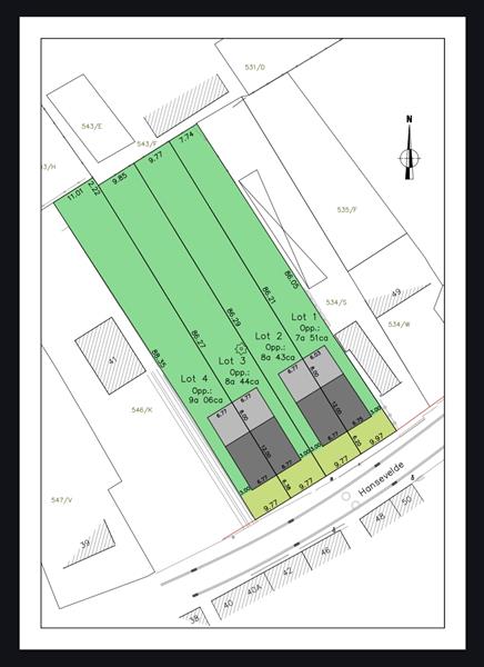 4 x 1 bouwgrond van telkens +/- 800m²